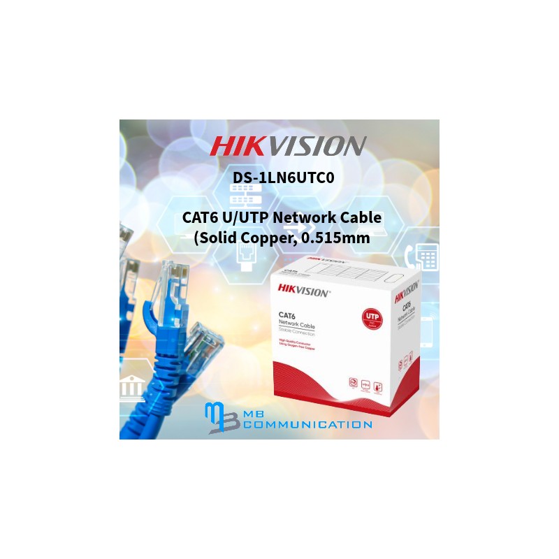 Hikvision DS-1LN6UTC0 Cat6 UTP Network Cable is a high-quality 24AWG solid copper Ethernet cable engineered for dependable, high-speed data transmission and efficient Power over Ethernet (PoE) applications. Supplied in a 305-meter (1000 ft) pull box, it is well suited for structured cabling in CCTV surveillance systems, commercial networks, offices, and residential installations.