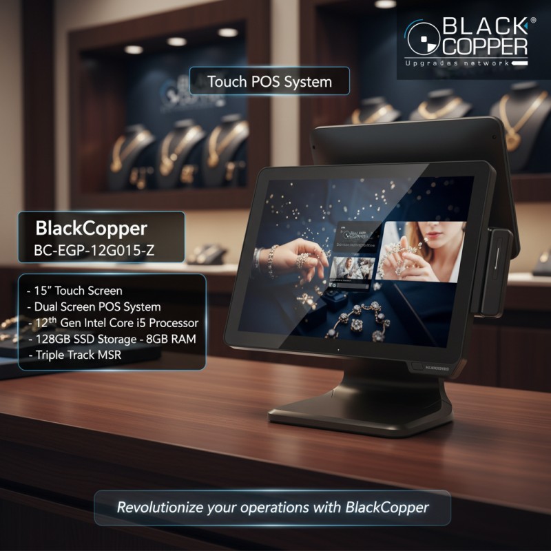 Transform your business with the BlackCopper BC-EGP-12G015-Z dual screen POS system. Contact MB Communication today for more details and to place your order.